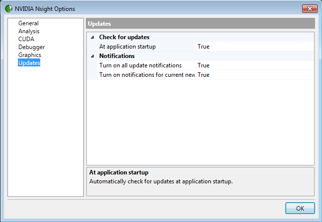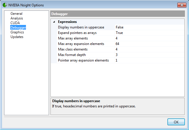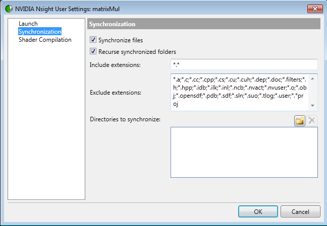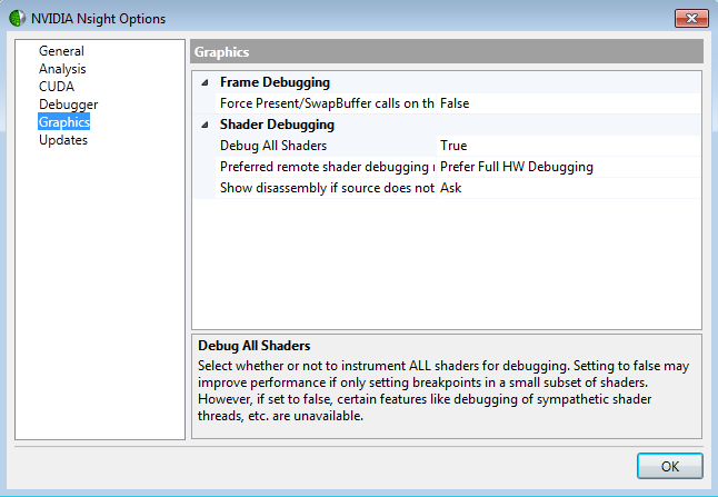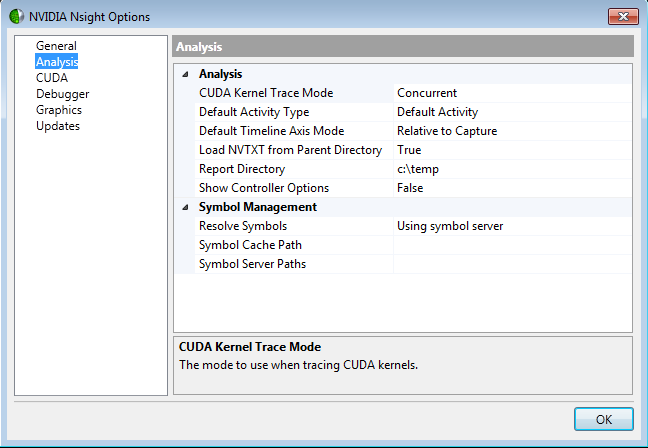 Click OK when you are finished configuring your options for NVIDIA Nsight.