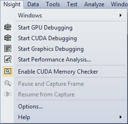 After installing NVIDIA Nsight on the host machine, open Visual Studio and go to Nsight > Options to configure your settings.